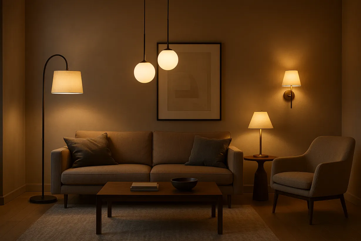 Для создания гармоничного освещения в гостиной используют несколько видов светильников. Каждый из них выполняет определенную роль, а их комбинация позволяет добиться баланса между функциональностью и эстетикой.