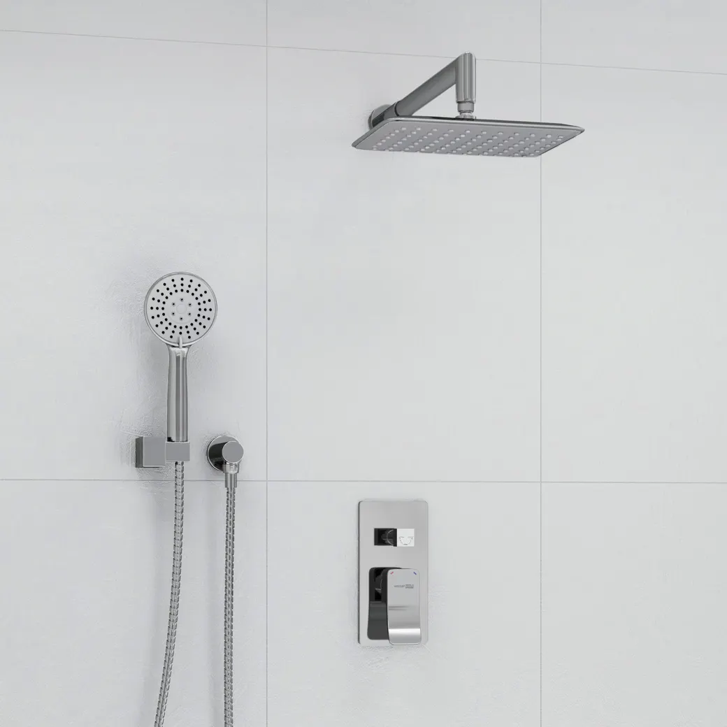 - Эстетичный дизайн: Хромированный цвет и прямоугольная форма данного комплекта для душа придают ванной комнате современный и стильный вид.