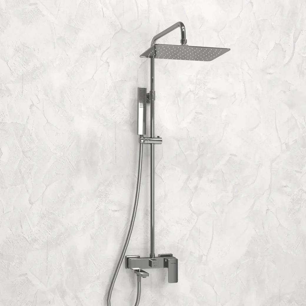 - Настенный монтаж душевого комплекта максимально упрощает установку и экономит место в ванной комнате.