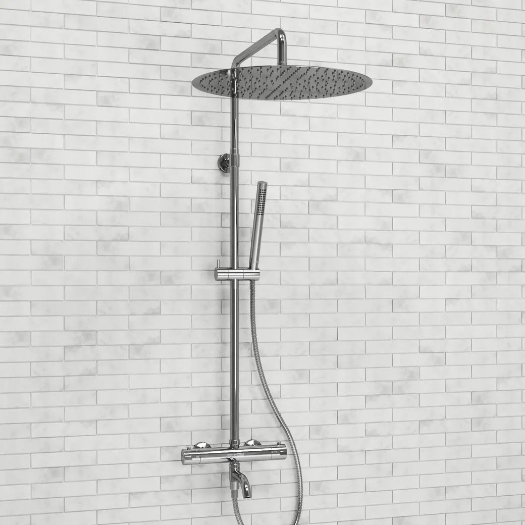WasserKRAFT A188.117.137.010.CH Thermo душевой комплект с термостатическим смесителем — идеальное решение для ванной комнаты. Этот душевой комплект обеспечивает комфортный настенный монтаж и отличается стильным хромированным покрытием. Благодаря высокому немецкому качеству, он обеспечивает надежную работу и безопасность.