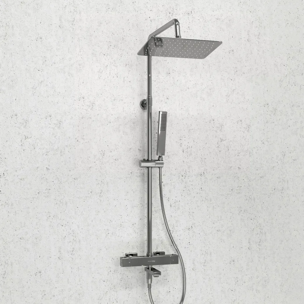 - Безопасность и комфорт: Термостатический смеситель поддерживает стабильную температуру воды, обеспечивая комфортное принятие душа.