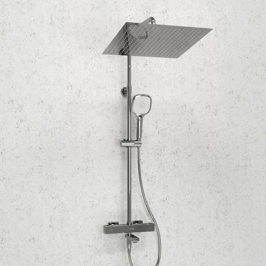 - Квадратная форма душевого комплекта добавляет элегантности и современности интерьеру вашей ванной комнаты.