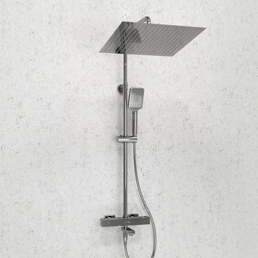 - Безопасность и комфорт: Термостатический смеситель в составе душевого комплекта гарантирует постоянную температуру воды, предотвращая риск ожогов.