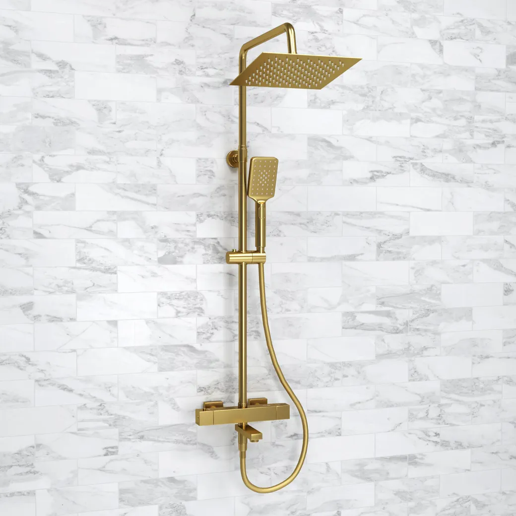Представляем душевой комплект [WasserKRAFT A199.198.201.BG Thermo] с термостатическим смесителем, который идеально сочетает в себе стиль и функциональность. Этот душевой комплект выполнен в элегантном золотом цвете, что придаст вашей ванной комнате особый шик. Благодаря настенному монтажу, вы получите оптимальное использование пространства и легкий доступ к управлению температурой воды.