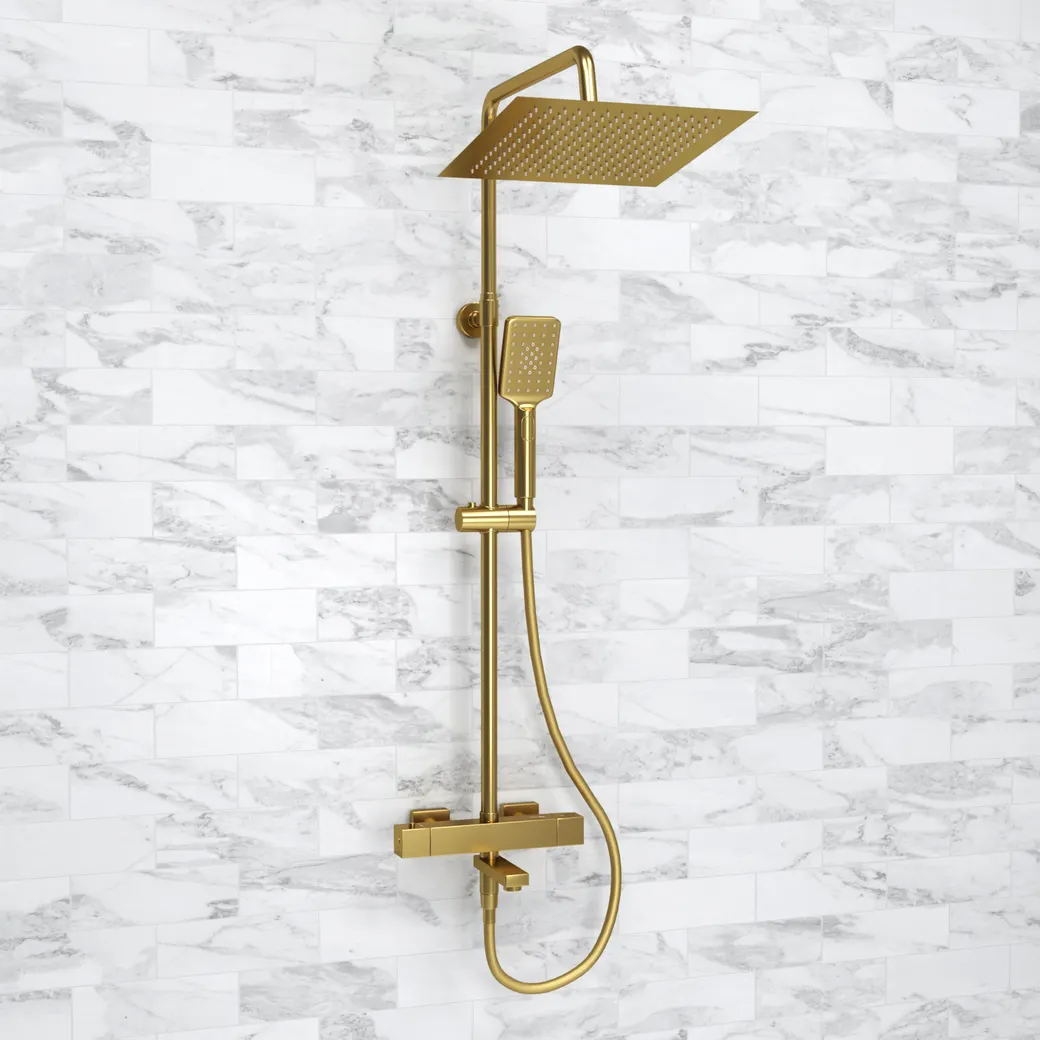Душевой комплект WasserKRAFT A199.260.201.BG Thermo с термостатическим смесителем — это идеальное решение для создания комфортных условий в вашей ванной комнате. Этот комплект обеспечивает точную настройку температуры благодаря термостатическому смесителю, а его квадратная форма добавляет современности вашему интерьеру.