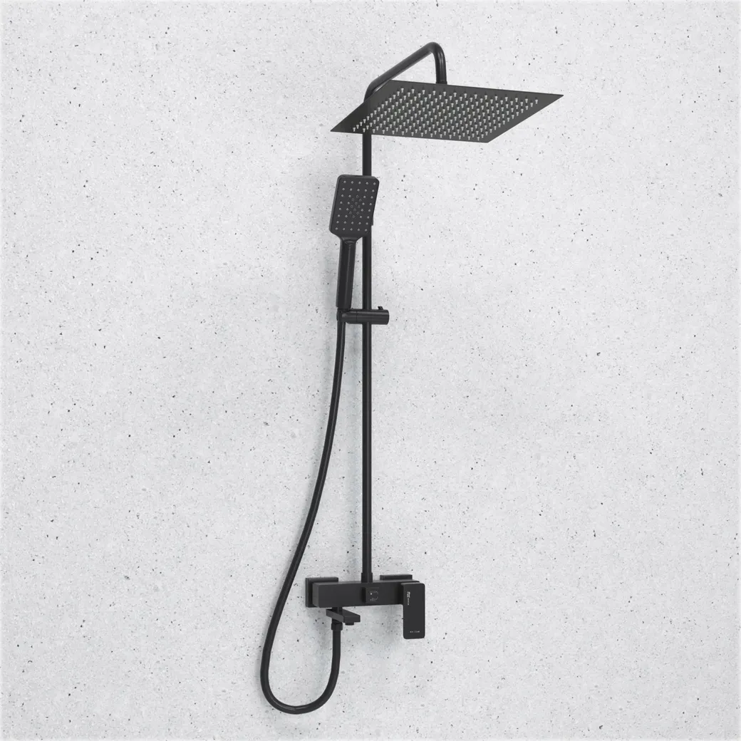 - Современный дизайн: Квадратная форма и черный цвет выделяют данный душевой комплект среди других категорий.