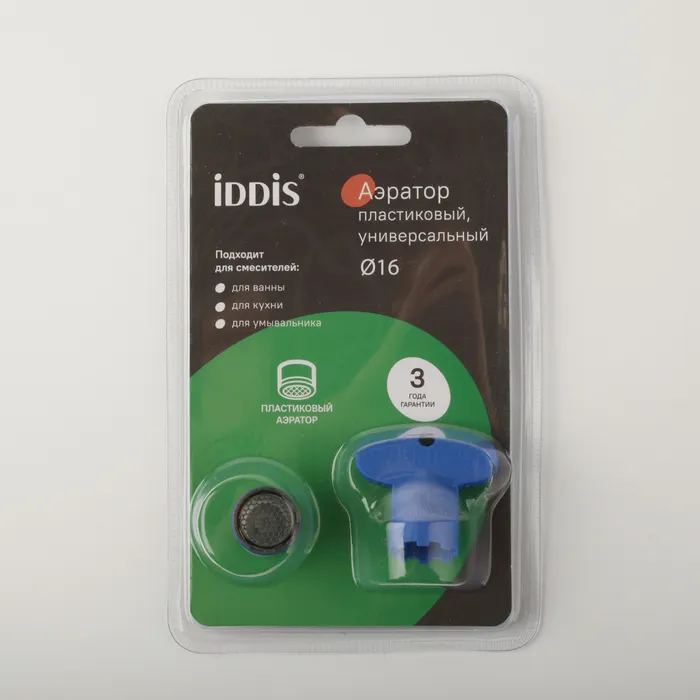 Встраиваемый аэратор IDDIS® представляет собой сетчатую насадку на смеситель, предназначенную для насыщения воды кислородом без заметного снижения напора струи. Рисунок нижней сетки типа «соты» обеспечивает высокую шумоизоляцию и лучшее распределение потока, не позволяя брызгам воды заливать пространство вокруг. Аэратор IDDIS® дает возможность улучшить качество воды за счет фильтрации крупных нежелательных частиц и примесей, сделать ее менее хлорированной. Модель подходит для комплектации смесителей IDDIS® с внутренней резьбой крана диаметром 16 мм. Изделие устанавливается непосредственно в корпус смесителя без дополнительных монтажных гаек, что обеспечивает красивый и минималистичный внешний вид смесителя. • Съемный аэратор гарантирует ровный и мягкий поток воды без брызг. Аэратор из современного пластика в меньшей степени подвержен известковым отложениям и легко прочищается обратным потоком воды и твердой щеткой. • Гарантия на аксессуары к смесителям IDDIS® – 3 года. (с) Авторский текст, февраль 2022 г.