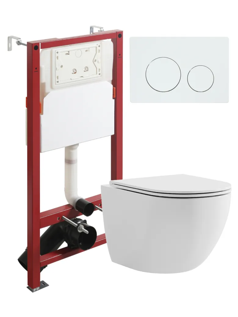 Agger Унитаз подвесной безободковый белый с инсталляцией, микролифт, кнопка смыва белая арт-ATI03100+APB188