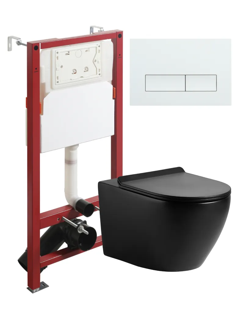Agger Унитаз подвесной безободковый черный с инсталляцией, микролифт, кнопка смыва белая арт-ATI03144+APB288