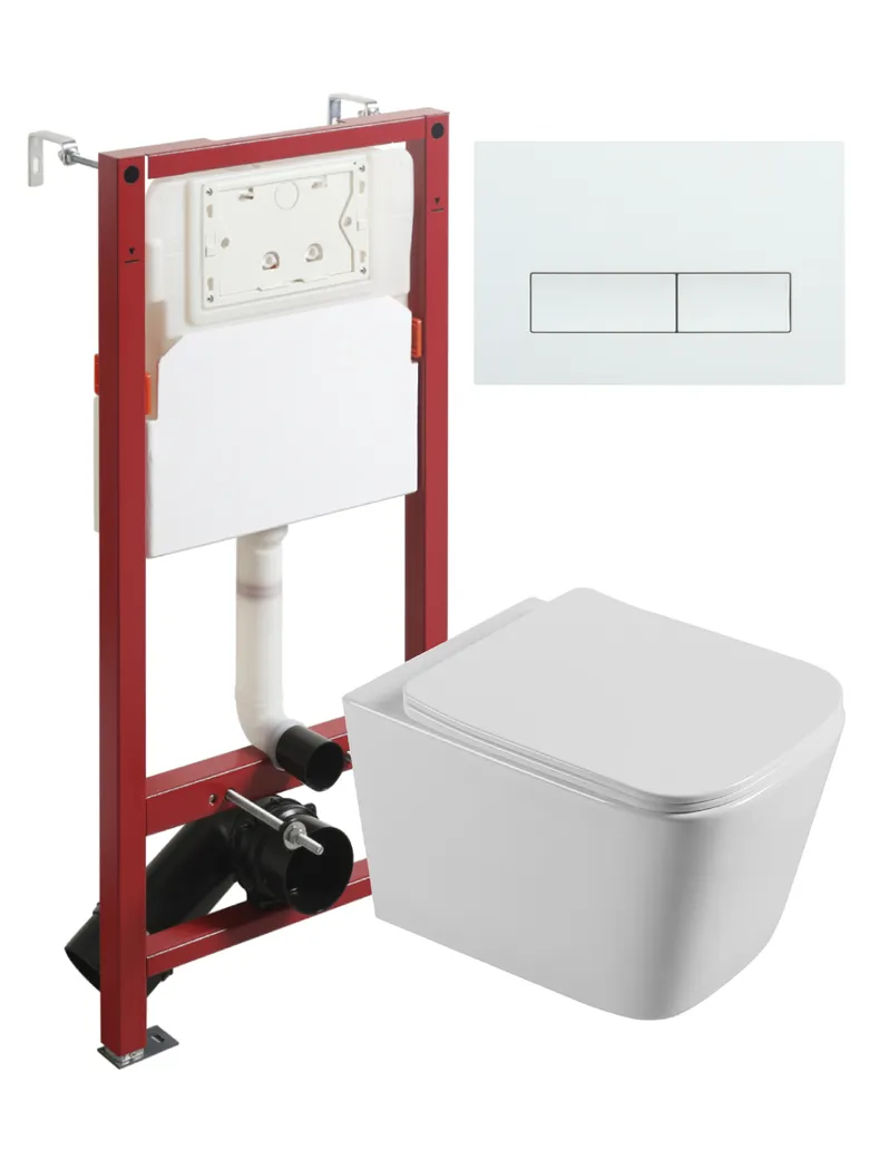 Agger Унитаз подвесной безободковый белый с инсталляцией, микролифт, кнопка смыва белая арт-ATI04100+APB288