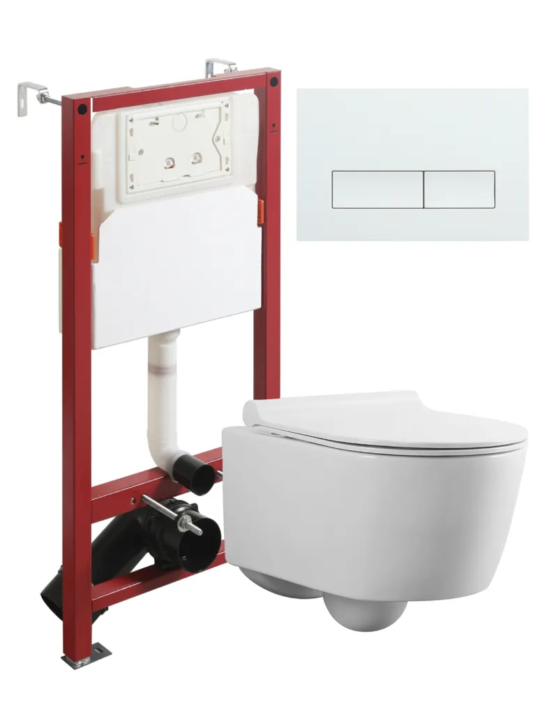Agger Унитаз подвесной безободковый белый с инсталляцией, микролифт, кнопка смыва белая арт-ATI05100+APB288