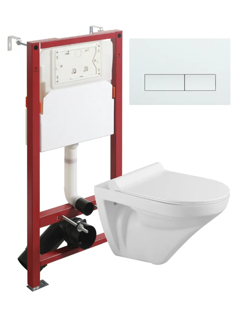 Agger Унитаз подвесной безободковый белый с инсталляцией, микролифт, кнопка смыва белая арт-ATI06100+APB288
