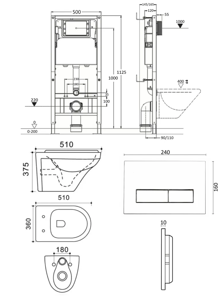 Подвесной безободковый унитаз с инсталляцией и кнопкой смыва от немецкого бренда Agger - функциональное и эргономичное решение. Материал унитаза санфарфор отличается беспористой структурой, высокой прочностью и стойкостью к появлению пятен, что позволит сохранить первоначальный вид изделия на долгие годы использования, гарантия от производителя 25 лет. Обтекаемая форма корпуса не позволяет скапливаться пыли. Мощный каскадный смыв - подарит комфорт при эксплуатации. Безободковая модель - отсутствие недоступных областей для уборки обеспечит простой уход и отсутствие посторонних запахов. В комплекте быстросъемная крышка-сиденье с функцией плавного закрывания Soft-close, сиденье изготовлено из прочного материала - дюропласта, петли крышки-сиденья из нержавеющей стали. Скрытая система монтажа, цвет глянцевый белый. Инсталляция обеспечит минимальный уровень шума и максимальный уровень комфорта при эксплуатации. В комплект входят все необходимые крепления. Максимально допустимая нагрузка 400 кг. Объем смыва 3 и 6 литра позволяет экономить воду, снижая ее расход. Ширина рамы - 500 мм, глубина - 145/165 мм, высота - 1125/1325 мм. Материал - сталь. Кнопка смыва с механическим управлением отличается современным дизайном и гармонично дополнит интерьер. Выполнена в цвете глянцевый белый. Форма кнопок - прямоугольная, материал - пластик. Гарантия: 25 лет - унитаз, 10 лет - инсталляция, 2 года - кнопка смыва.