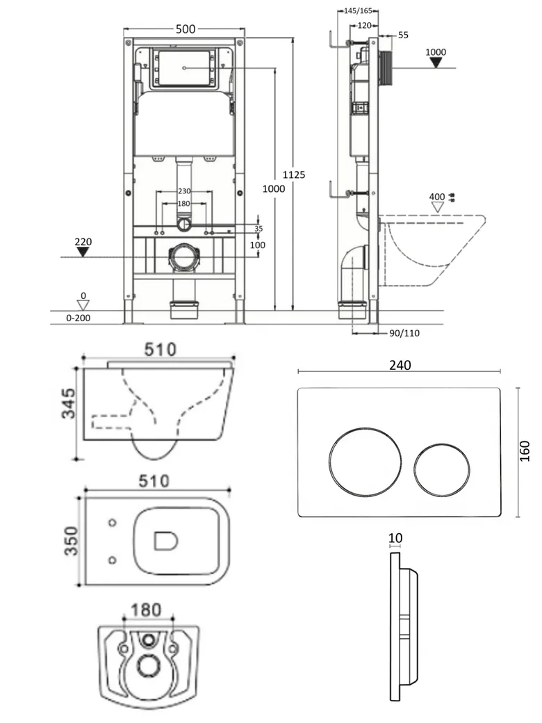 Подвесной безободковый унитаз с инсталляцией и кнопкой смыва от немецкого бренда Agger - функциональное и эргономичное решение. Материал унитаза санфарфор отличается беспористой структурой, высокой прочностью и стойкостью к появлению пятен, что позволит сохранить первоначальный вид изделия на долгие годы использования, гарантия от производителя 25 лет. Обтекаемая форма корпуса не позволяет скапливаться пыли. Мощный каскадный смыв - подарит комфорт при эксплуатации. Безободковая модель - отсутствие недоступных областей для уборки обеспечит простой уход и отсутствие посторонних запахов. В комплекте быстросъемная крышка-сиденье с функцией плавного закрывания Soft-close, сиденье изготовлено из прочного материала - дюропласта, петли крышки-сиденья из нержавеющей стали. Скрытая система монтажа, цвет глянцевый белый. Инсталляция обеспечит минимальный уровень шума и максимальный уровень комфорта при эксплуатации. В комплект входят все необходимые крепления. Максимально допустимая нагрузка 400 кг. Объем смыва 3 и 6 литра позволяет экономить воду, снижая ее расход. Ширина рамы - 500 мм, глубина - 145/165 мм, высота - 1125/1325 мм. Материал - сталь. Кнопка смыва с механическим управлением отличается современным дизайном и гармонично дополнит интерьер. Выполнена в цвете глянцевый белый. Форма кнопок - круглая, материал - пластик. Гарантия: 25 лет - унитаз, 10 лет - инсталляция, 2 года - кнопка смыва.