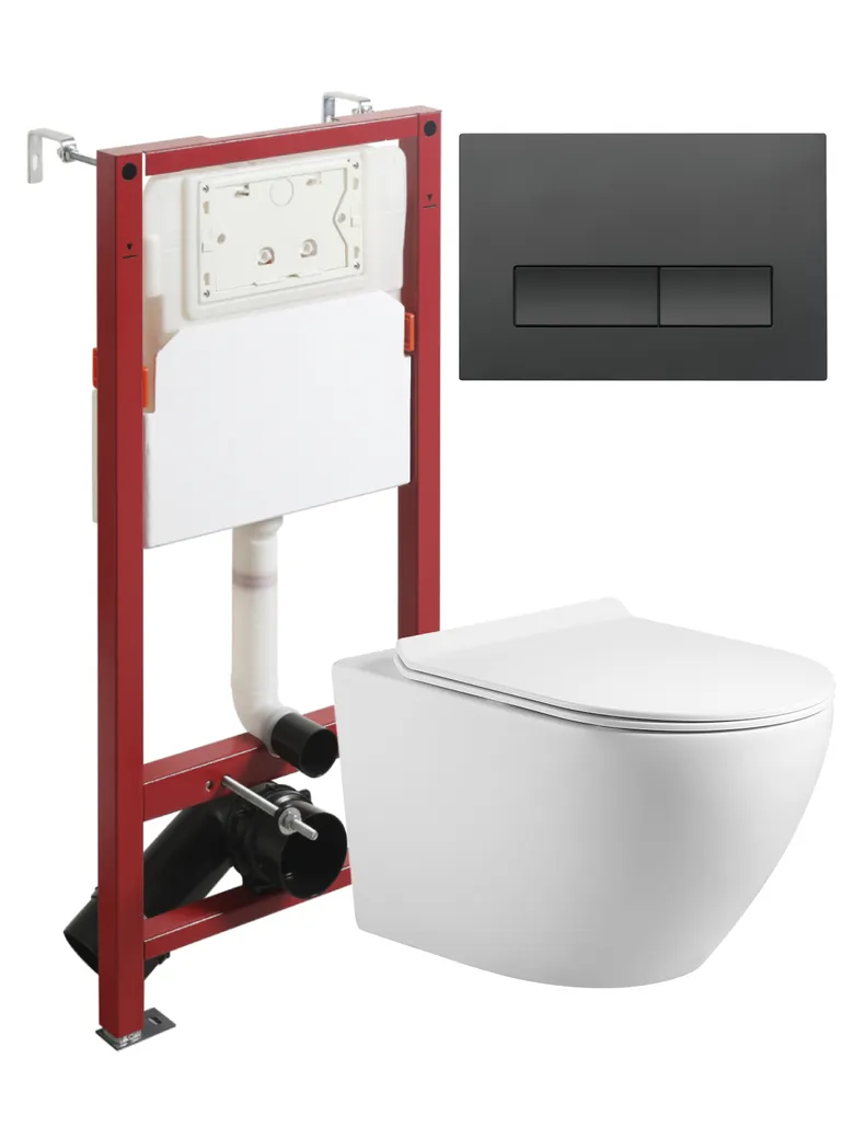Agger Унитаз подвесной безободковый TORNADO белый с инсталляцией, микролифт, кнопка смыва черная арт-ATI09150L+APB244