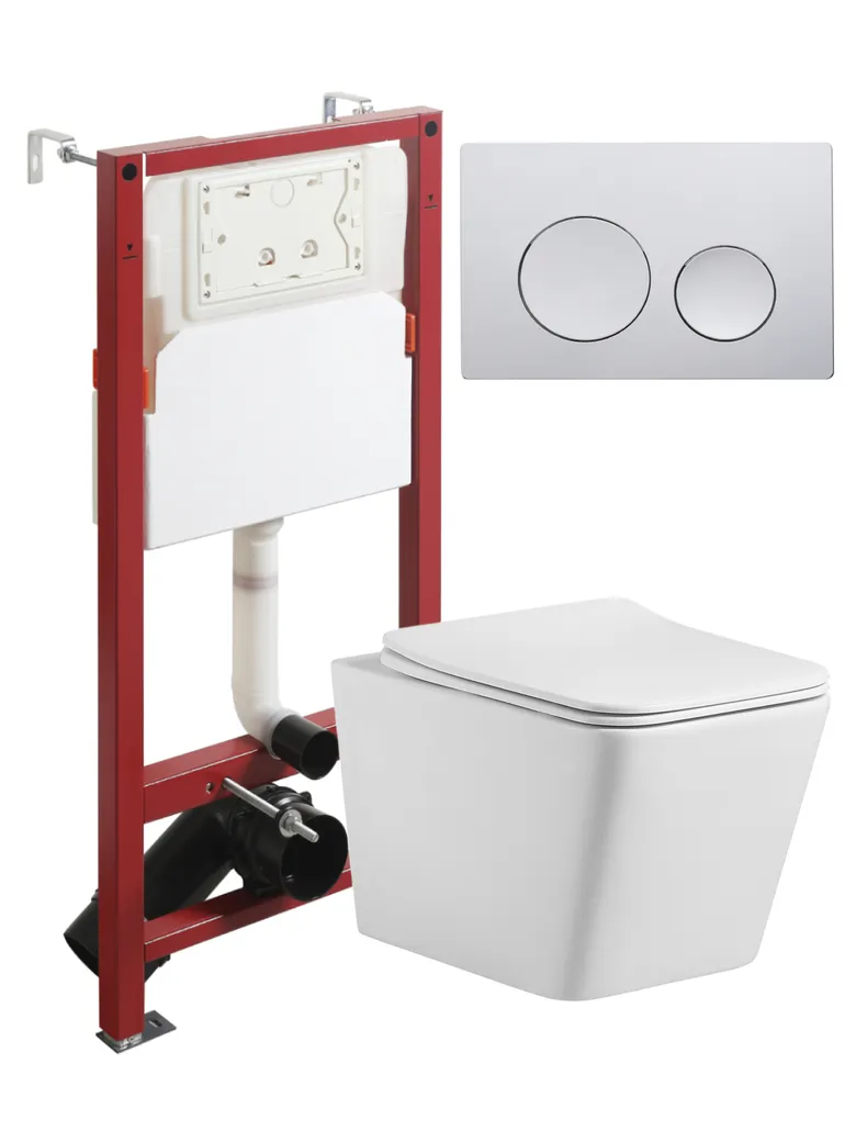 Подвесной безободковый унитаз TORNADO с инсталляцией и кнопкой смыва от немецкого бренда Agger - функциональное и эргономичное решение. Материал унитаза санфарфор отличается беспористой структурой, высокой прочностью и стойкостью к появлению пятен, что позволит сохранить первоначальный вид изделия на долгие годы использования, гарантия от производителя 25 лет. Обтекаемая форма корпуса не позволяет скапливаться пыли. Отличительная особенность данной модели - смыв Торнадо (эффект водоворота), работает максимально бесшумно и эффективно, осуществляется даже небольшим количеством воды. Безободковая модель - отсутствие недоступных областей для уборки обеспечит простой уход и отсутствие посторонних запахов. В комплекте быстросъемная крышка-сиденье с функцией плавного закрывания Soft-close (микролифт), сиденье изготовлено из прочного материала - дюропласта, петли крышки-сиденья из нержавеющей стали. Скрытая система монтажа, цвет глянцевый белый. Инсталляция обеспечит минимальный уровень шума и максимальный уровень комфорта при эксплуатации. В комплект входят все необходимые крепления. Максимально допустимая нагрузка 400 кг. Объем смыва 3 и 6 литра позволяет экономить воду, снижая ее расход. Ширина рамы - 500 мм, глубина - 145/165 мм, высота - 1125/1325 мм. Материал - сталь. Кнопка смыва с механическим управлением отличается современным дизайном и гармонично дополнит интерьер. Выполнена в цвете глянцевый хром. Форма кнопок - круглая, материал - пластик. Гарантия: 25 лет - унитаз, 10 лет - инсталляция, 2 года - кнопка смыва.