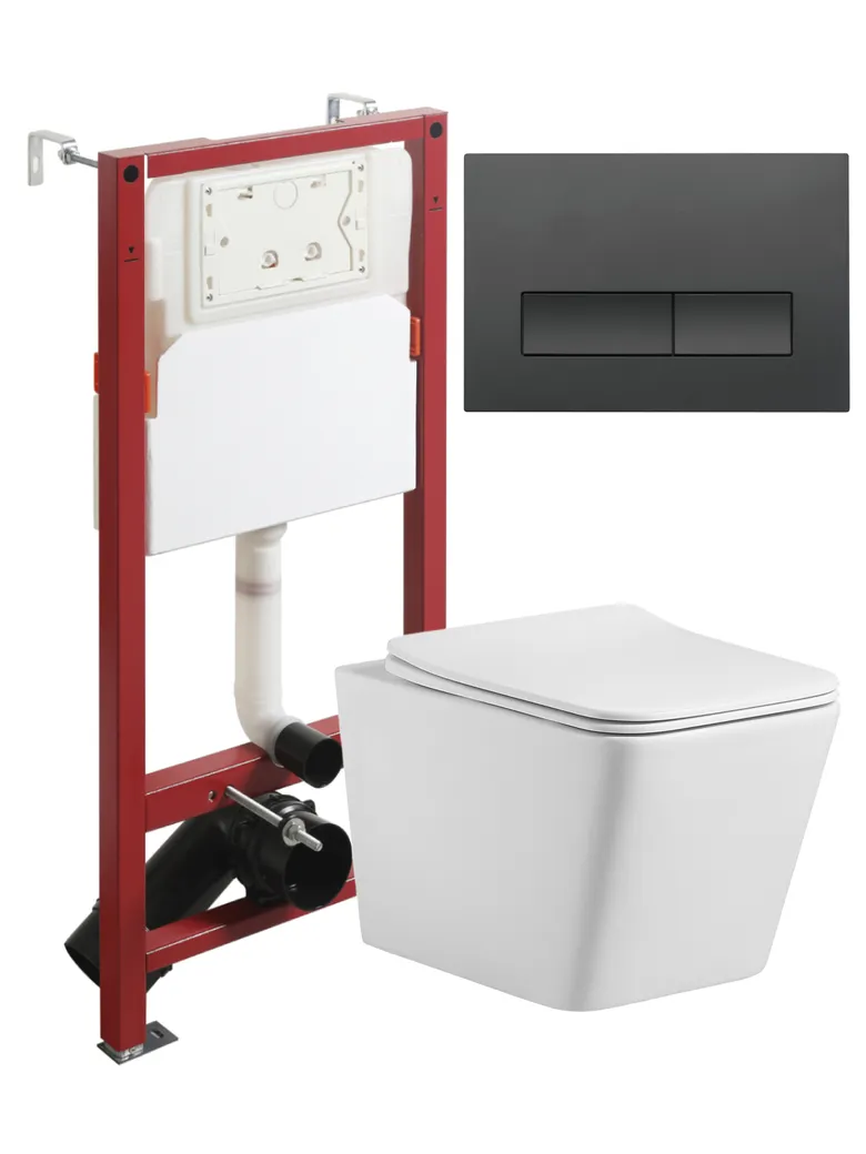Agger Унитаз подвесной безободковый TORNADO белый с инсталляцией, микролифт, кнопка смыва черная арт-ATI10150+APB244