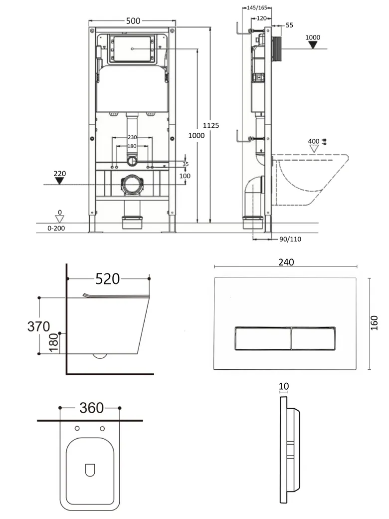Подвесной безободковый унитаз TORNADO с инсталляцией и кнопкой смыва от немецкого бренда Agger - функциональное и эргономичное решение. Материал унитаза санфарфор отличается беспористой структурой, высокой прочностью и стойкостью к появлению пятен, что позволит сохранить первоначальный вид изделия на долгие годы использования, гарантия от производителя 25 лет. Обтекаемая форма корпуса не позволяет скапливаться пыли. Отличительная особенность данной модели - смыв Торнадо (эффект водоворота), работает максимально бесшумно и эффективно, осуществляется даже небольшим количеством воды. Безободковая модель - отсутствие недоступных областей для уборки обеспечит простой уход и отсутствие посторонних запахов. В комплекте быстросъемная крышка-сиденье с функцией плавного закрывания Soft-close (микролифт), сиденье изготовлено из прочного материала - дюропласта, петли крышки-сиденья из нержавеющей стали. Скрытая система монтажа, цвет глянцевый белый. Инсталляция обеспечит минимальный уровень шума и максимальный уровень комфорта при эксплуатации. В комплект входят все необходимые крепления. Максимально допустимая нагрузка 400 кг. Объем смыва 3 и 6 литра позволяет экономить воду, снижая ее расход. Ширина рамы - 500 мм, глубина - 145/165 мм, высота - 1125/1325 мм. Материал - сталь. Кнопка смыва с механическим управлением отличается современным дизайном и гармонично дополнит интерьер. Выполнена в цвете матовый черный. Форма кнопок - прямоугольная, материал - пластик. Гарантия: 25 лет - унитаз, 10 лет - инсталляция, 2 года - кнопка смыва.