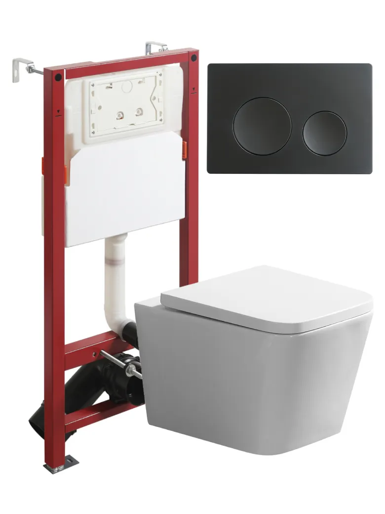 Agger Унитаз подвесной безободковый TORNADO белый с инсталляцией, микролифт, кнопка смыва черная арт-ATI11150+APB144