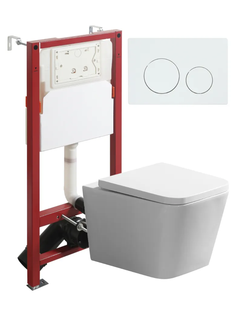 Agger Унитаз подвесной безободковый TORNADO белый с инсталляцией, микролифт, кнопка смыва белая арт-ATI11150+APB188
