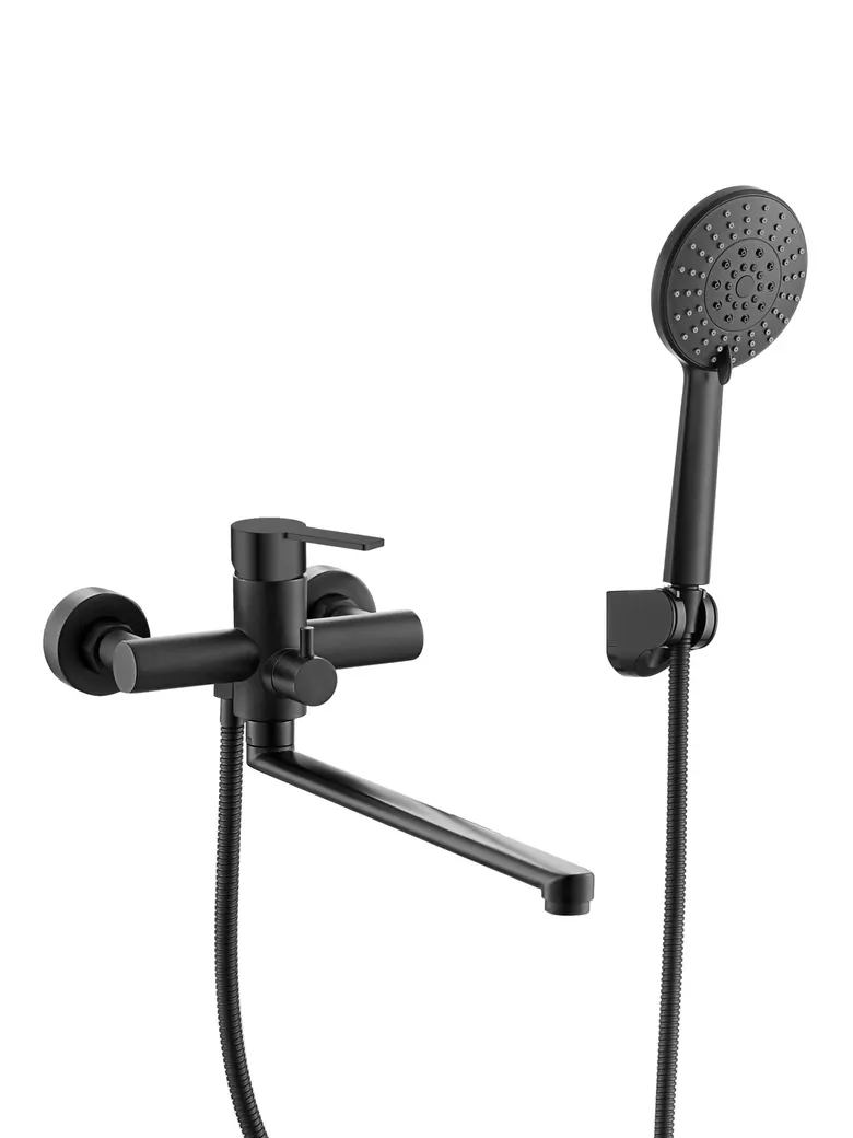 Однозахватный смеситель для ванны/душа с универсальным изливом и душевым набором Agger Easy украсит современный интерьер ванной комнаты. Корпус изделия изготовлен из высококачественной нержавеющей стали, не подверженной коррозии от длительного контакта с водой. Фирменный картридж Agger делает лёгким управление напором и температурой воды, а поворотный керамический дивертор переключит её направление с излива на душ даже при низком давлении. Покрытие в цвете матовый черный, за которым просто ухаживать мягкой салфеткой, нанесено методом порошковой окраски с многоступенчатой системой подготовки и высокотемпературной обработкой. Аэратор экономит воду и, обогащая струю воздухом, делает её мягкой и без брызг. В комплекте душевой набор: ручной душ d115 мм, высота 255 мм (3 режима), душевой шланг 150 см в металлической оплетке (с защитой от перекручивания), настенный держатель лейки с регулировкой угла наклона. Стандарт подводки - 1/2. Гарантия 5 лет.