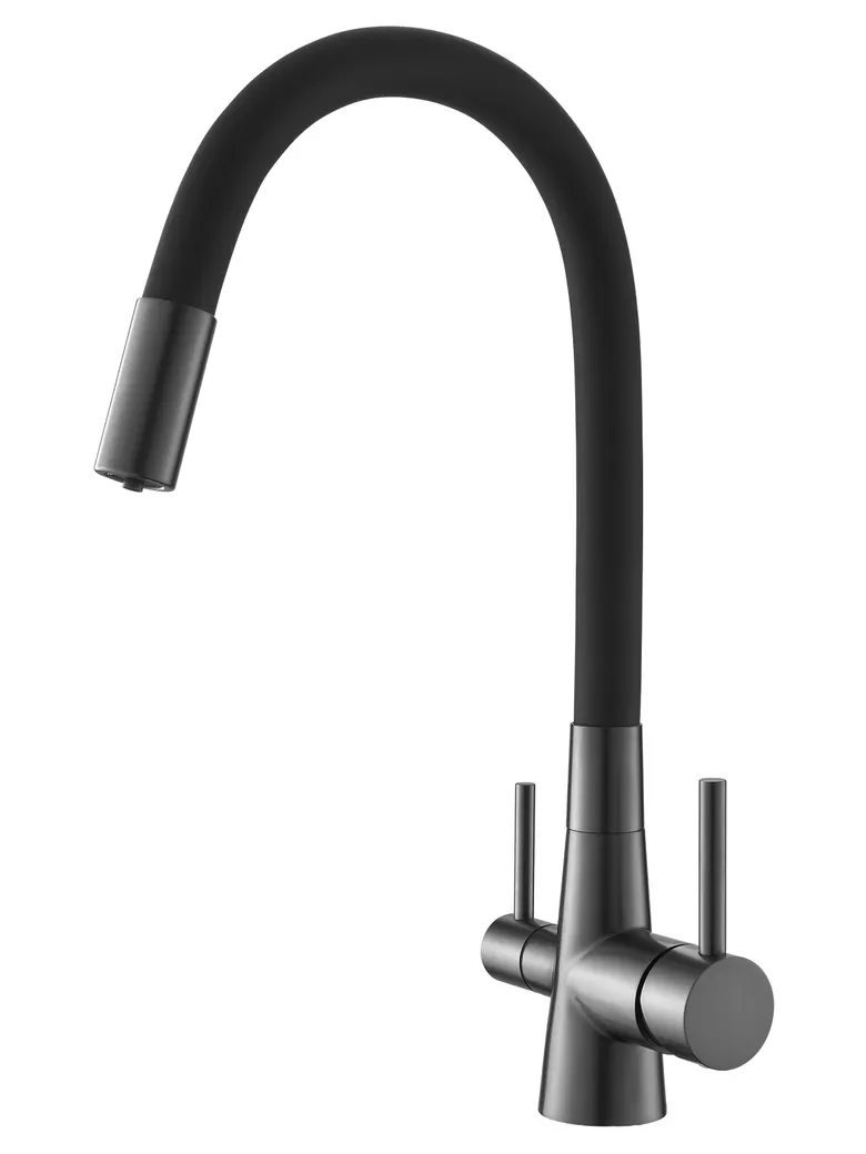 Agger Elegant смеситель для кухни однорычажный с каналом для питьевой воды и гибким изливом, оружейная сталь матовая арт-A3230355