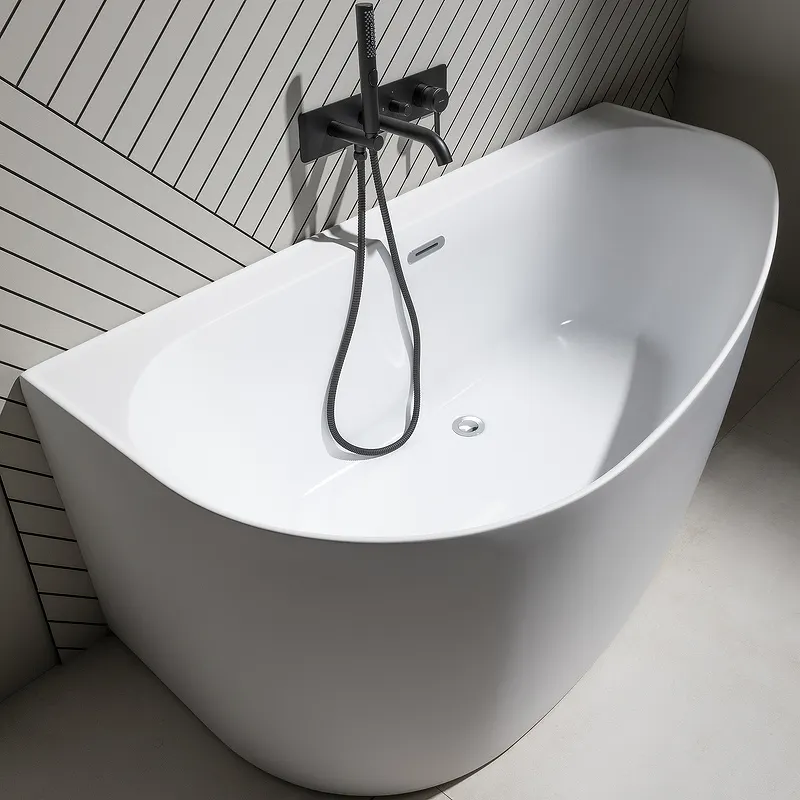 - Установка: Ванна пристенная, угловая, что позволяет экономить место и легко интегрировать в планировку.