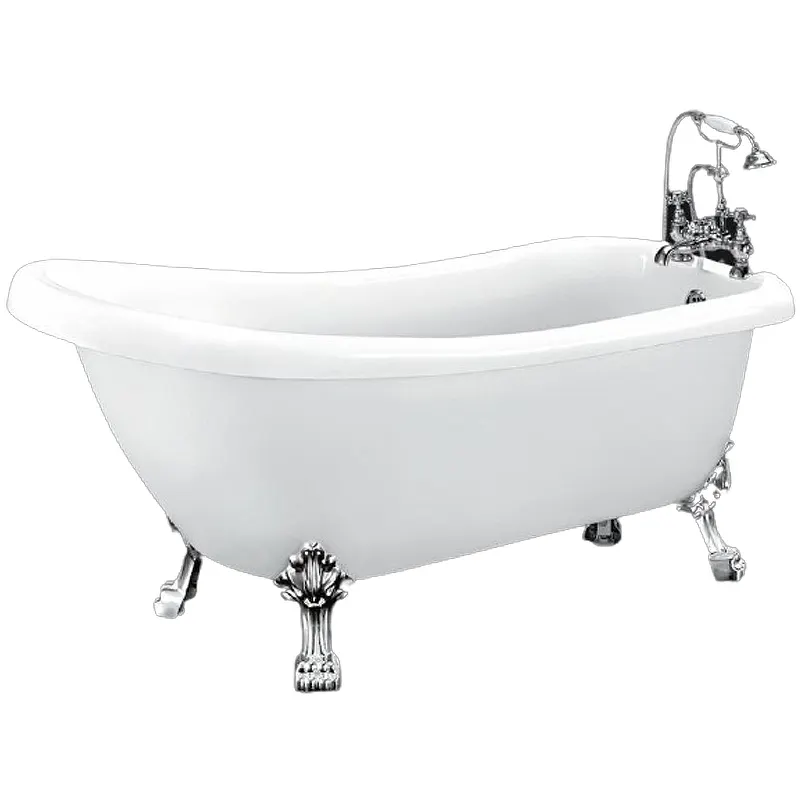 - Функциональный слив: расположение сливного отверстия в ногах и хромированная фурнитура обеспечивают удобство в эксплуатации.