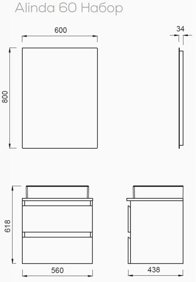 ALINDA Нижний модуль (60см) AD0060.10.PB + Раковина SU060 арт-AD0060.10.PB + SU060