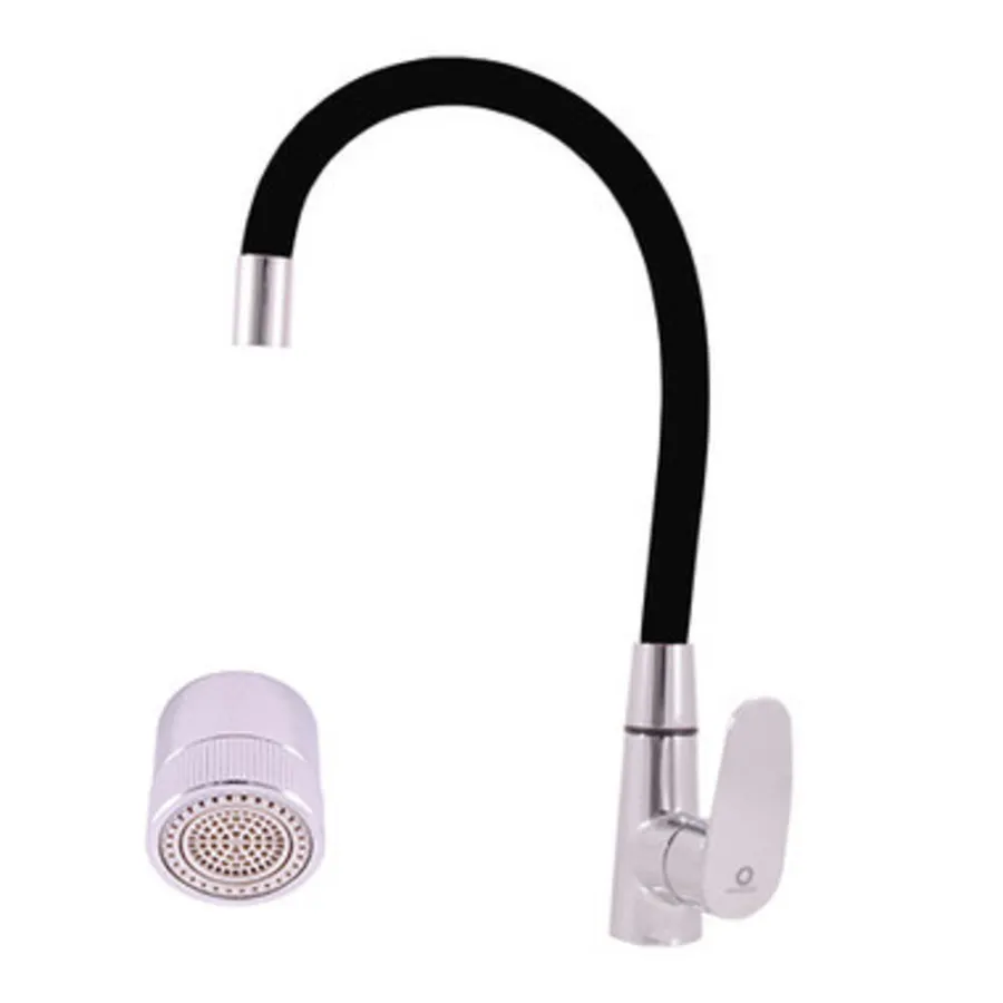 AMUR - смеситель кухонный, аэоратор на 2 положения (излив-душ), ХРОМ/ЧЕРНЫЙ 500 мм. арт-AM719.5/11C