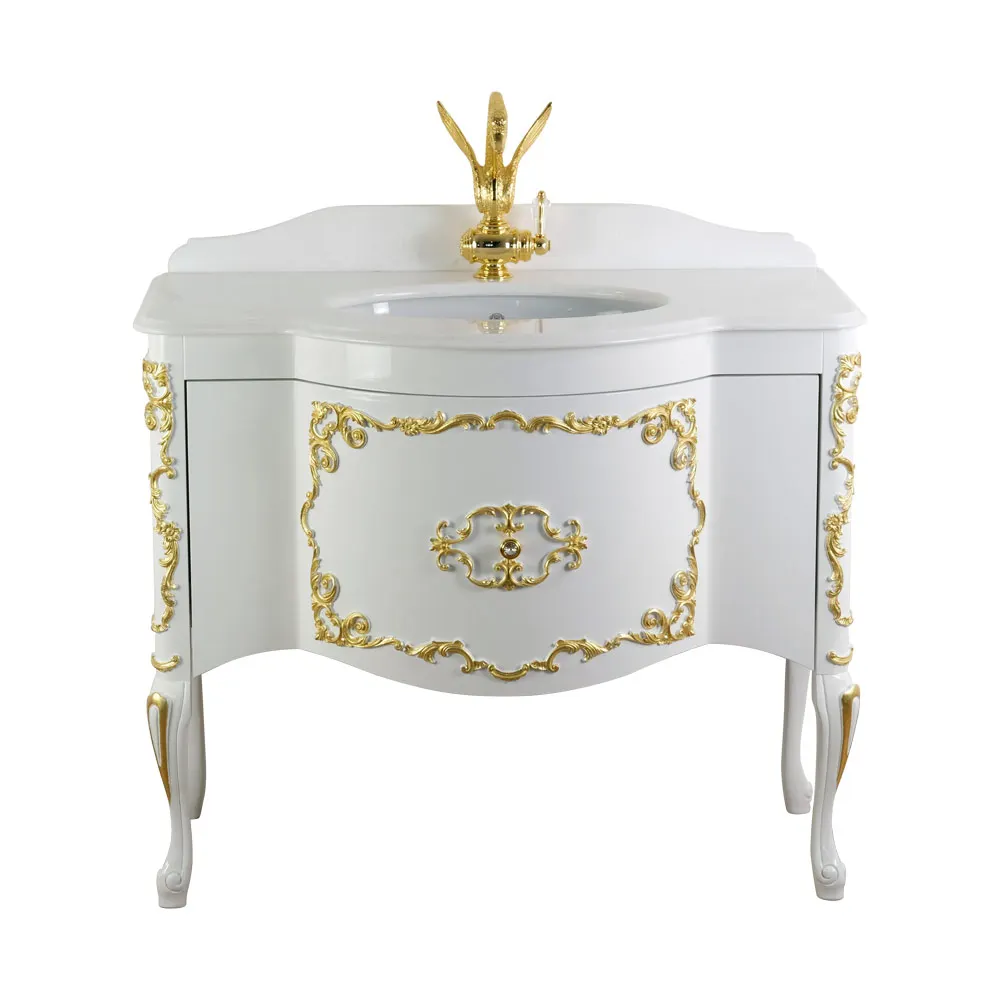 AMELIA База L100xH82xP58 см. 1 выдвижной ящик, LACCATO BIANCO BRIL/дек.FOGLIA ORO, ручка золото SW арт-27890