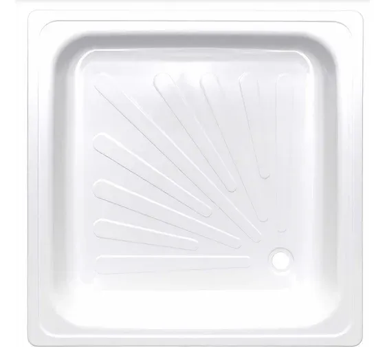 Поддон рифленый из стального листа глубокой вытяжки, покрытый стекловидной эмалью, квадратной формы, способ монтажа угловой, универсальная ориентация.