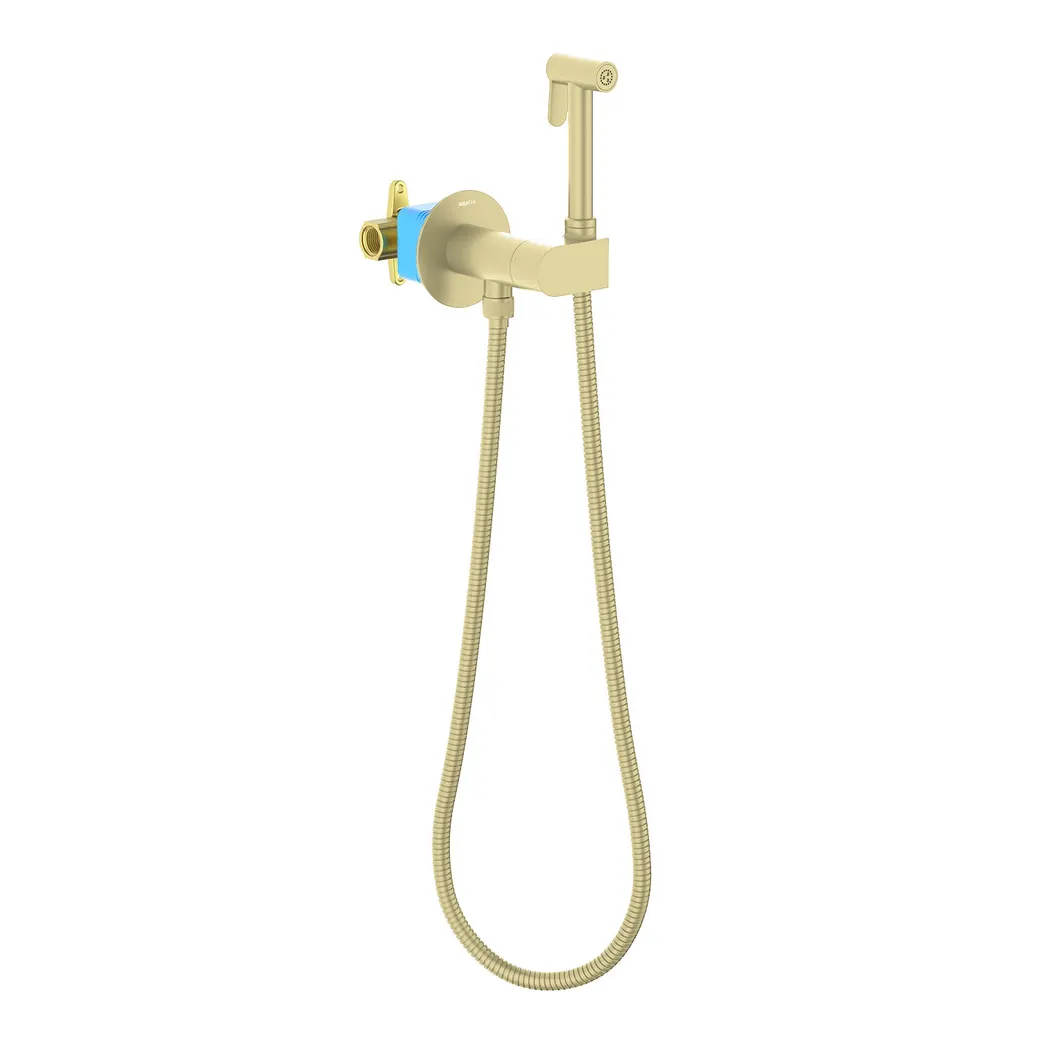 ОБЕРОН комплект для гигиенического душа встроенный (смеситель + гигиеническая лейка + шланг), шлиф. золото арт-AQ1024BG