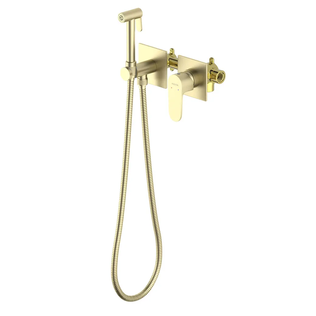 ОБЕРОН комплект для гигиенического душа встроенный 2 отв. (смеситель + гигиеническая лейка + шланг), шлиф. золото арт-AQ1220BG