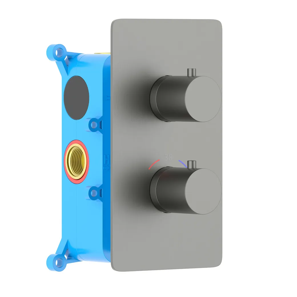 ЕВРОПА термостатический смеситель для ванны 2 режима (внешняя и скрытая часть), оружейная сталь арт-AQ1392BGM