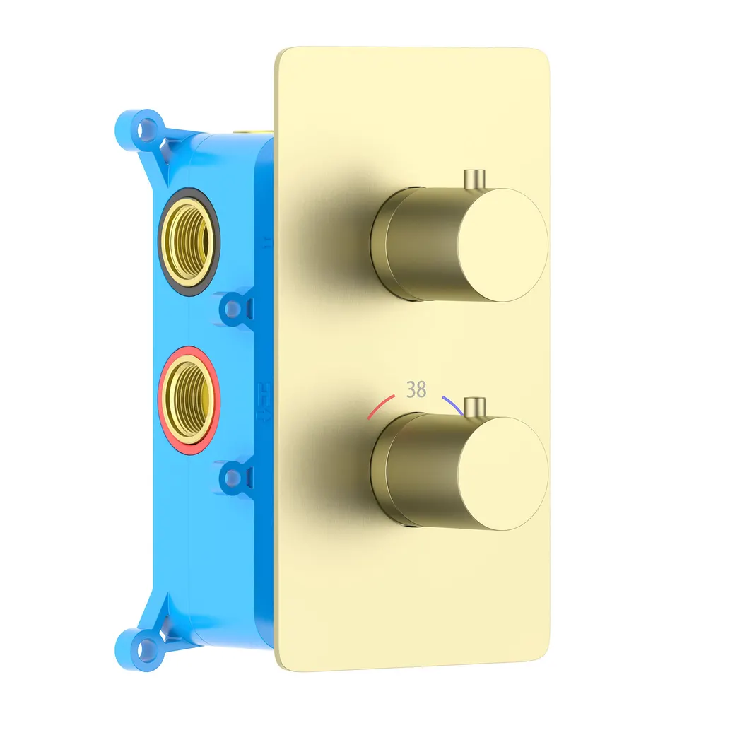ЕВРОПА термостатический смеситель для ванны 3 режима (внешняя и скрытая часть), шлиф. золото арт-AQ1393BG