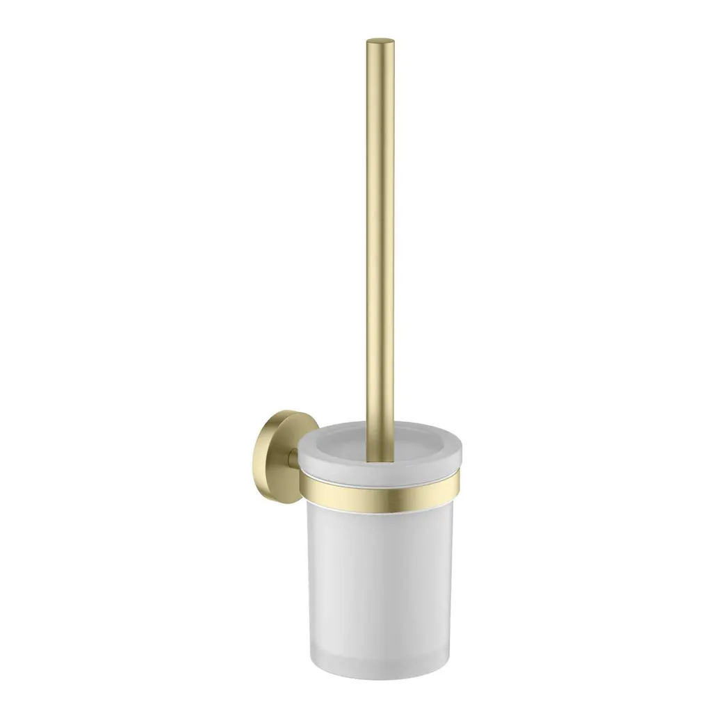 Материал - латунь Стакан из матового стекла Головка ершика из пластика, цвет черный Держатель из нержавейки Упаковано в белую коробку Размеры: 94*119*357мм