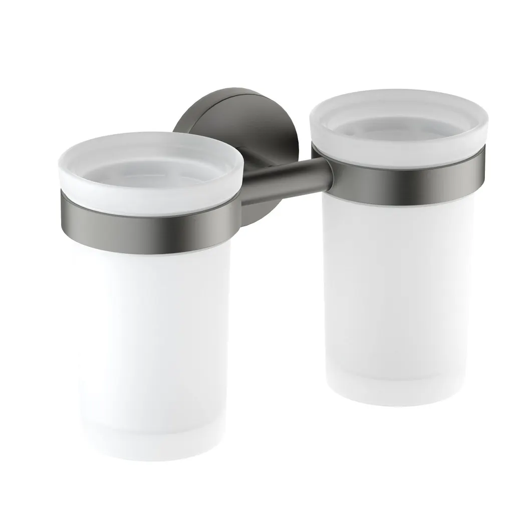 ЕВРОПА стакан с держателем двойной, оружейная сталь арт-AQ4117BGM