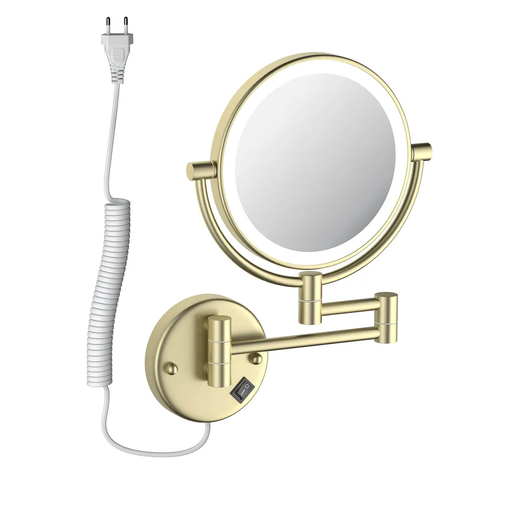 зеркало косметическое настенное с подсветкой 5х, шлиф. золото арт-AQ4915BG