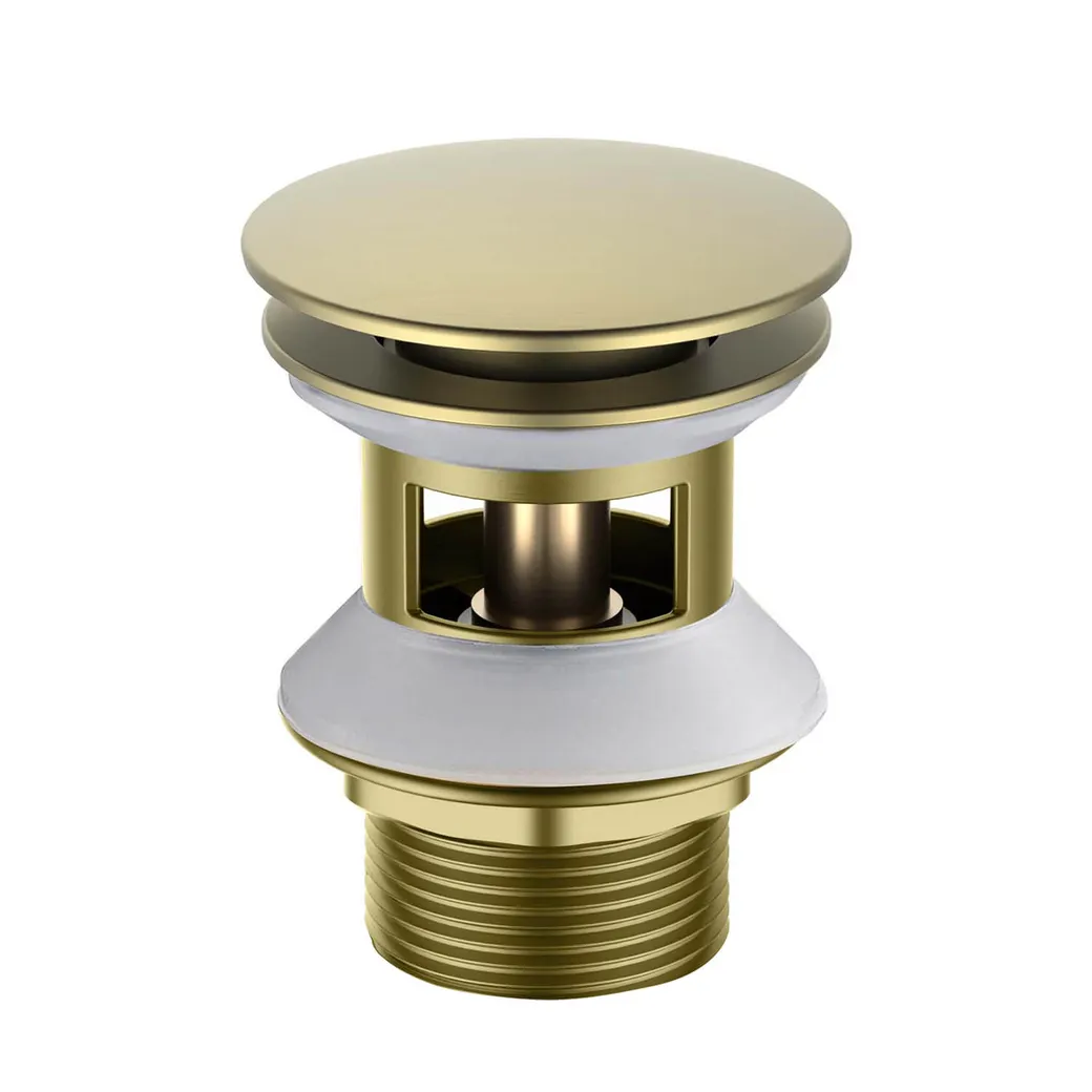 сливной набор для раковины Push-open с переливом, крышка круглая, шлиф. золото арт-AQ6002BG