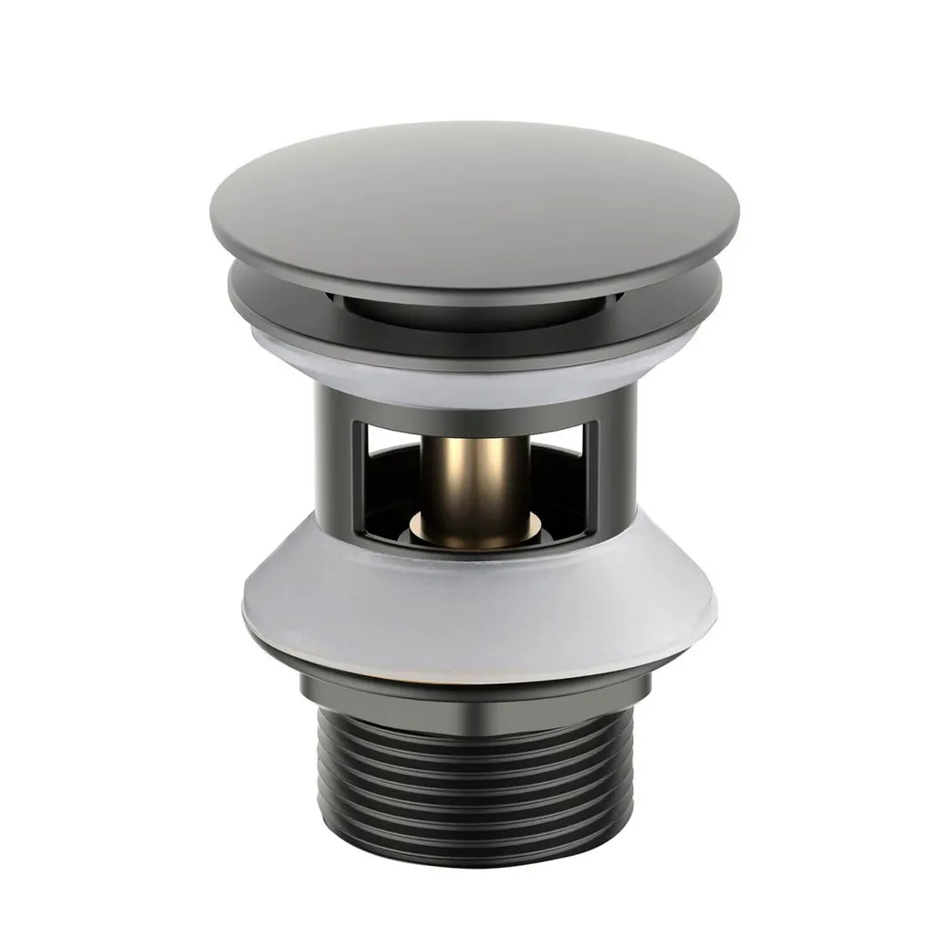 сливной набор для раковины Push-open с переливом, крышка круглая, оружейная сталь арт-AQ6002BGM