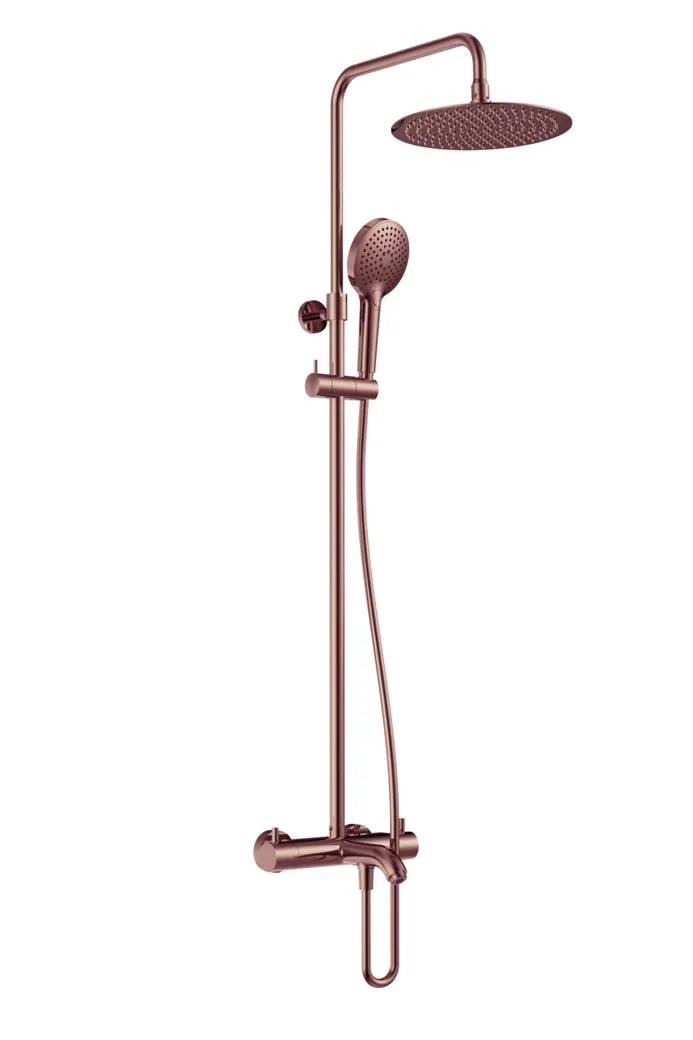 Душ. сист. с терм. и изливом, Ø250, лейка 3 реж, высота 1100-1500мм, Медь шлифованная арт-AQM8008BC
