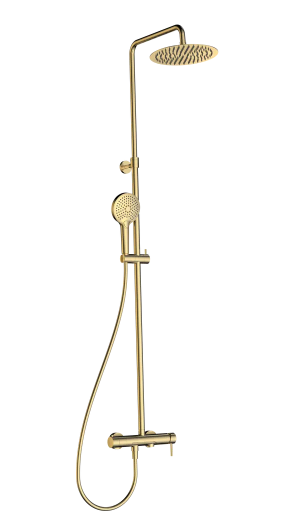 Душевая система со смесителем и изливом, Ø250, лейка 3 реж, 1100-1500мм, золото шлифован арт-AQM8011BG