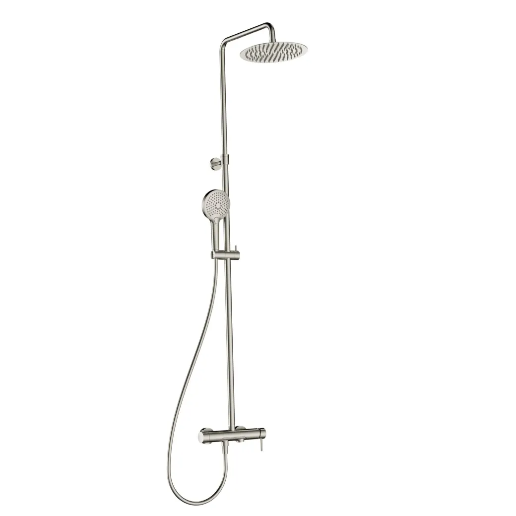 Душевая система со смесителем и изливом, Ø250, лейка 3 реж, 1100-1500мм, никель шлифованный арт-AQM8011BN