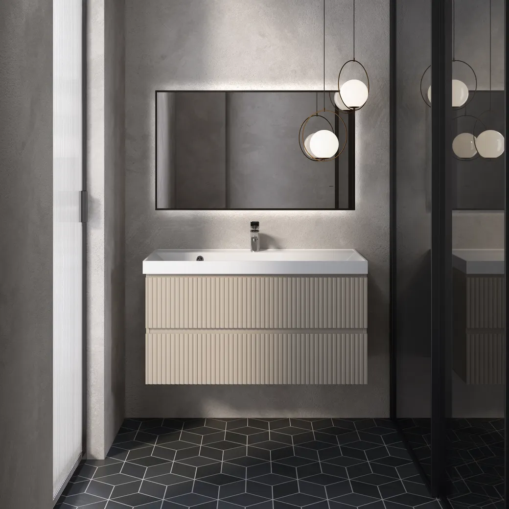 "S1" Тумба под умывальник подвесная 100 см., цвет бежевый. арт-AQM900110BG