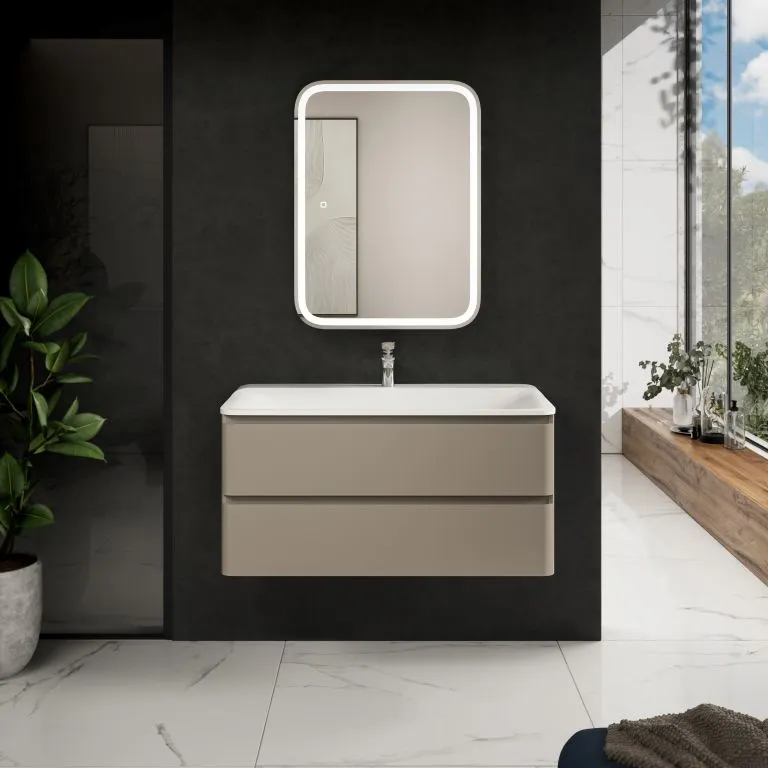 AQM900410BR "S4" тумба под умывальник подвесная 100 см., цвет бежевый. арт-AQM900410BG
