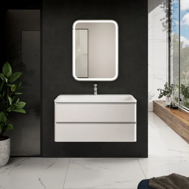 "S4" тумба под умывальник подвесная 100 см., цвет белый глянец. арт-AQM900410WH
