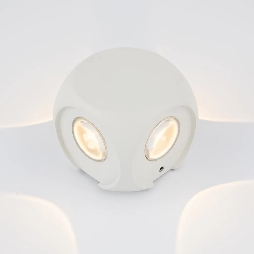 Серия настенных уличных светильников для архитектурно-художественной подсветки. Проходя через оптические линзы, расположенные с четырех сторон корпуса, световой поток фокусируется, оставляя на освещаемой поверхности четкий графический рисунок. Корпус изготовлен из устойчивого к перепадам температуры и коррозии алюминиевого сплава. В качестве источника света используется интегрированный LED-модуль. Модели серии представлены в черном и белом цвете.
