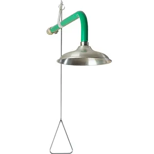 Аварийный душ настенный сделан из оцинкованной стали, лейка душа выполнена из полипропилена. Душ покрашен в сигнальный зеленый цвет