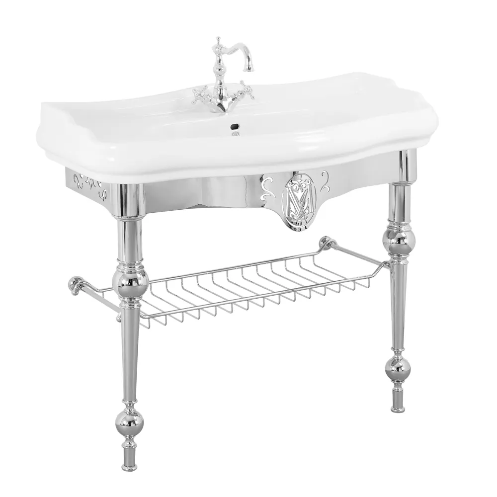 BELLA Комплект консоль напольная 100 см. с решеткой хром, раковина керамика белая арт-30332
